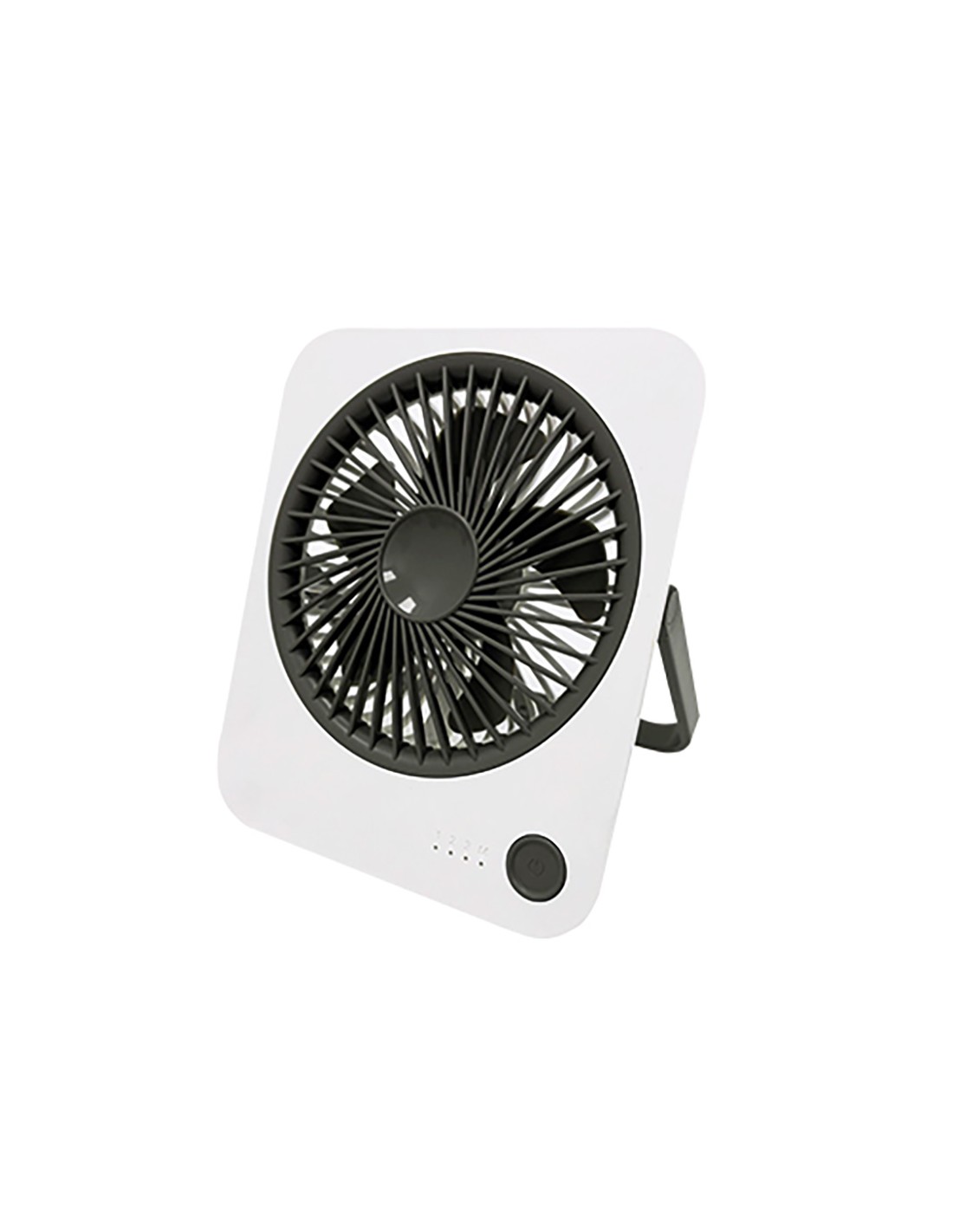 Ventilador de mesa recargable compacto y potente cuenta con una rejilla protectora de las aspas para mayor seguridad, 3 velocidades permite su colocación en superficies planas al contar con una base plegable, ocupa muy poco espacio, 1200 mah tiempo de trabajo 2 - 4,5 h ( según velocidad) tiempo de carga 2 h blanco y negro dimensiones 165 x 140 x 32,5 mm