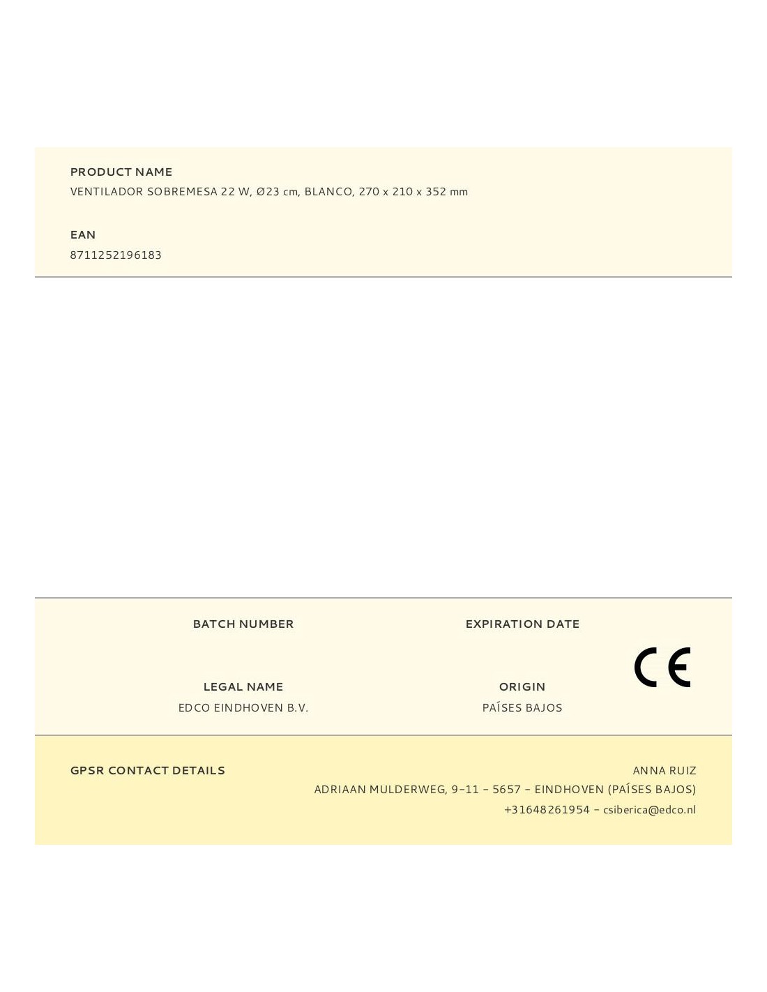 Ventilador sobremesa 22 w, ø23 cm, blanco, 270 x 210 x 352 mm