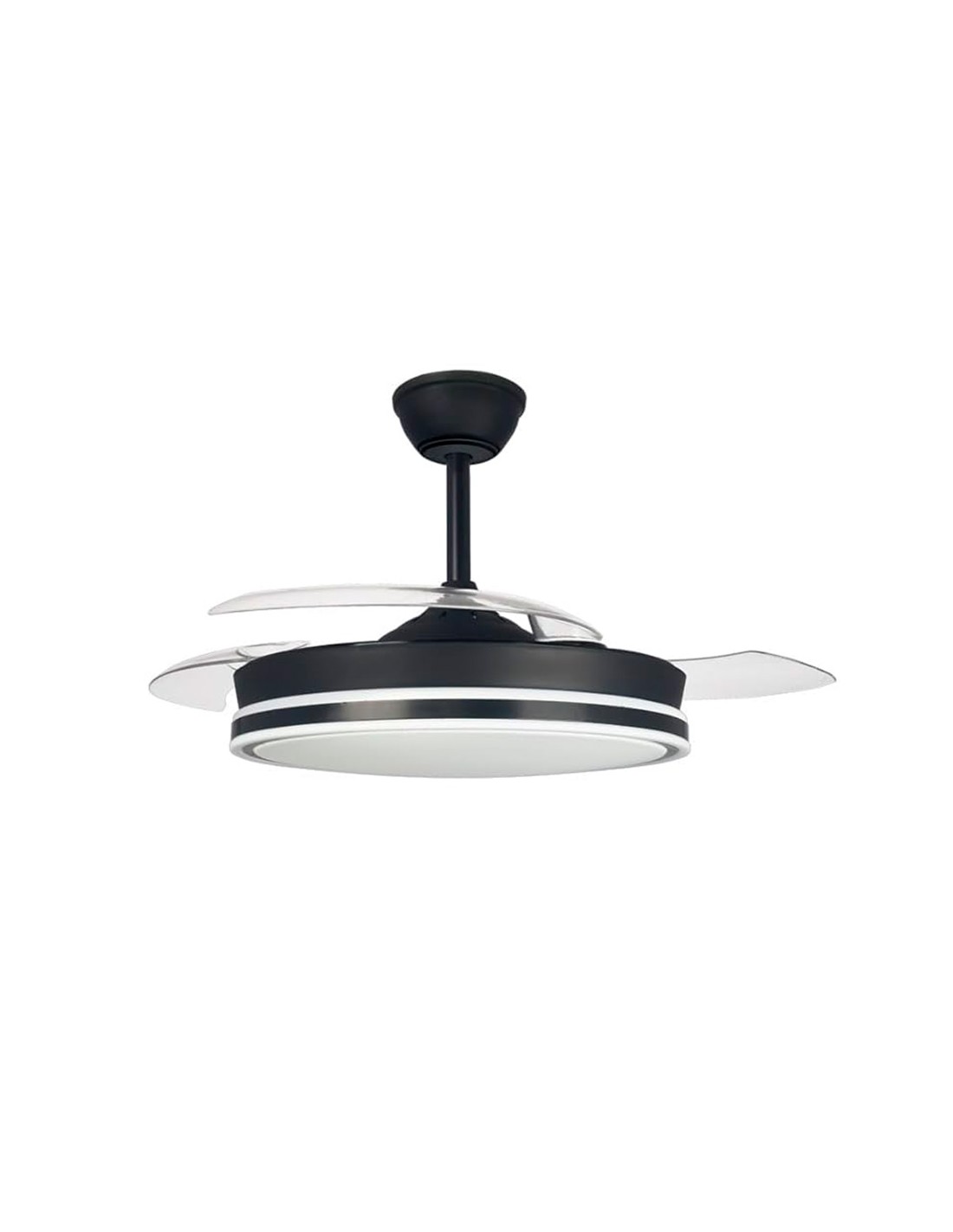 Ventilador de techo led 3cct aspas retráctiles supereco mini 39 w 3822 lm negro, aspas ø92 cm, plafón ø39 cm, altura 32 - 42 ...