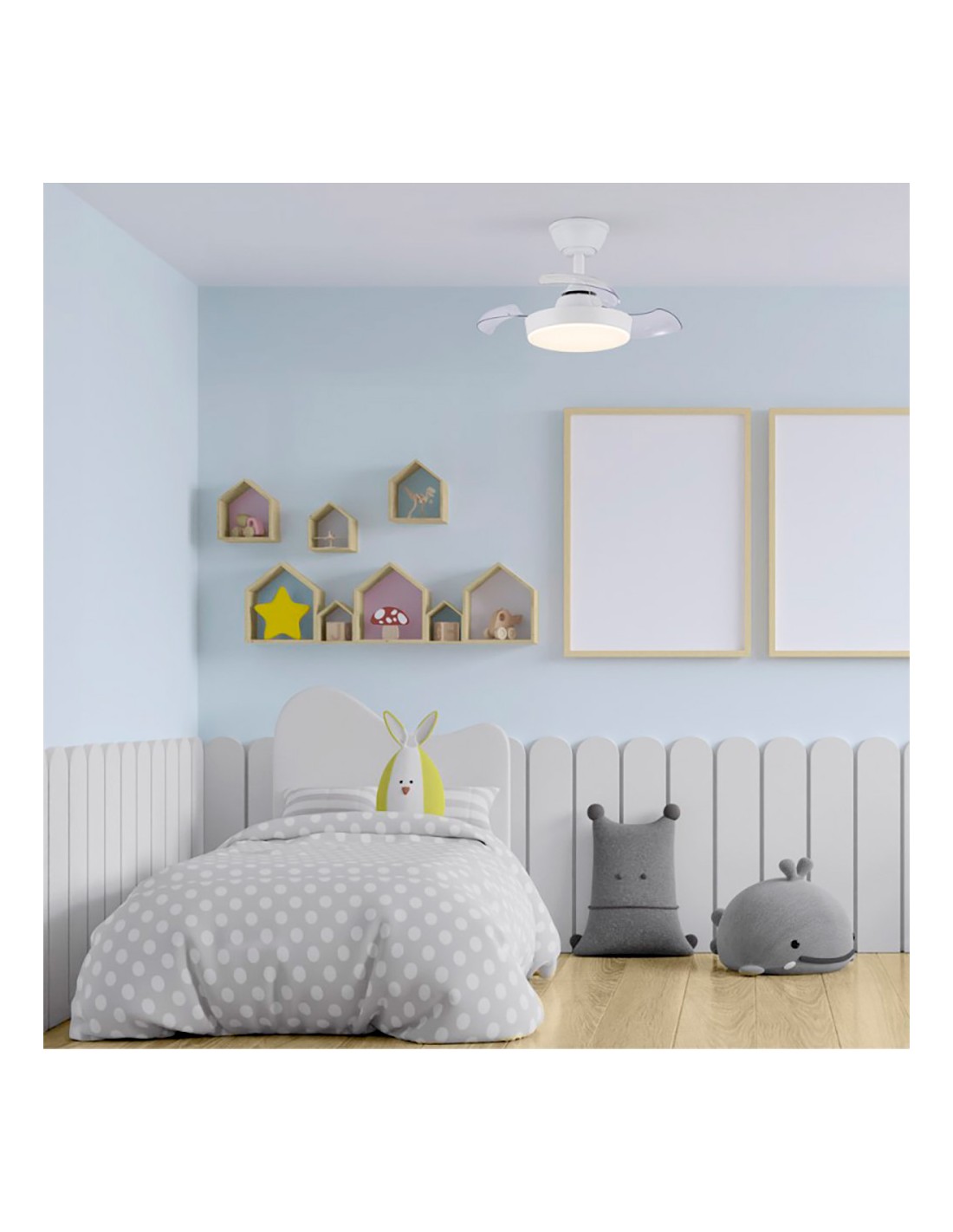 Ventilador de techo led 3cct aspas retráctiles hornet 32 w 3195 lm blanco, aspas ø56 cm, plafón ø26 cm, altura 34 - 44 cm