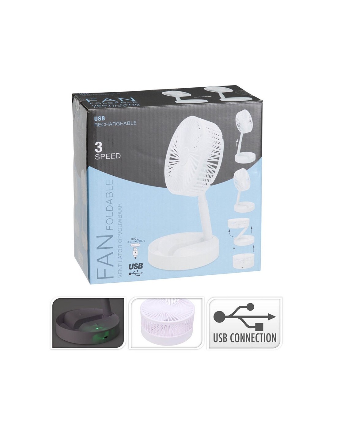 Ventilador de sobremesa plegable y recargable blanco, 3 velocidades, ø165 x 360 mm