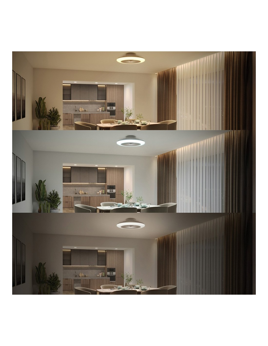 Ventilador de techo led 3 cct, color blanco con difusor opal, modelo amigo, 60 w, 6500 lm, tipo de flujo luminoso 360°, 3 tonos de luz: 3000- 4400 - 6500 k, con intensidad regulable, luz nocturna, vida útil nominal 15.000 h, flujo de aire natural + 6 velocidades, función inversa invierno-verano, motor ultra silencioso dc 25 w, función temporizador: 1 / 2 / 4 h, tensión: 220-240 ca, ip20, con mando a distancia (pilas no incluidas), incluye elementos de fijación. dimensiones: ø57,7 x 14,2 cm